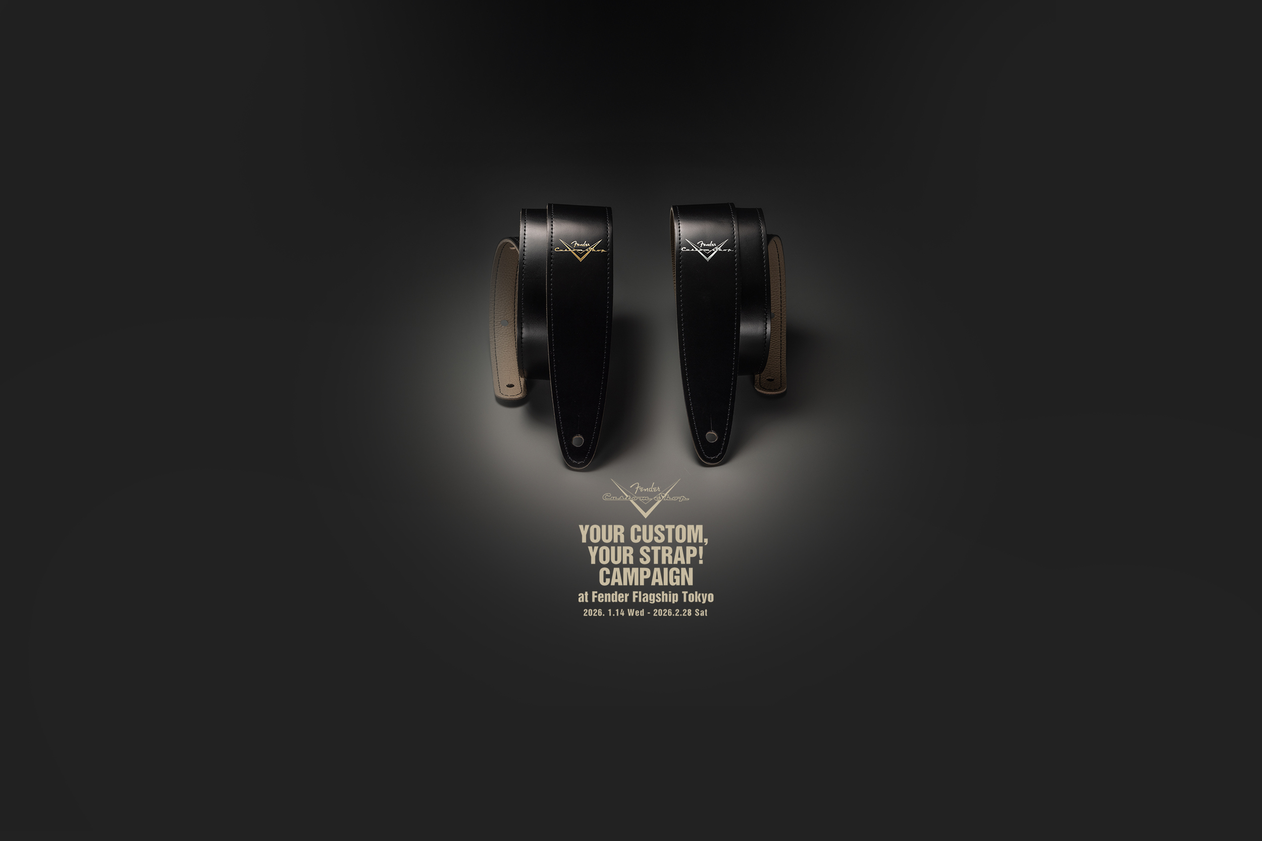 キャンペーン期間内に、Fender Flagship TokyoにてFender Custom Shop製ギターまたはベース(カスタムオーダー製品を除く)及び新規カスタムオーダーご成約の方に、お好みにあわせてカスタマイズが可能な、日本原産・国内タンニングのリアルカウレザーを使用したオリジナルレザーストラップをプレゼントします。